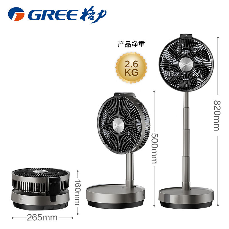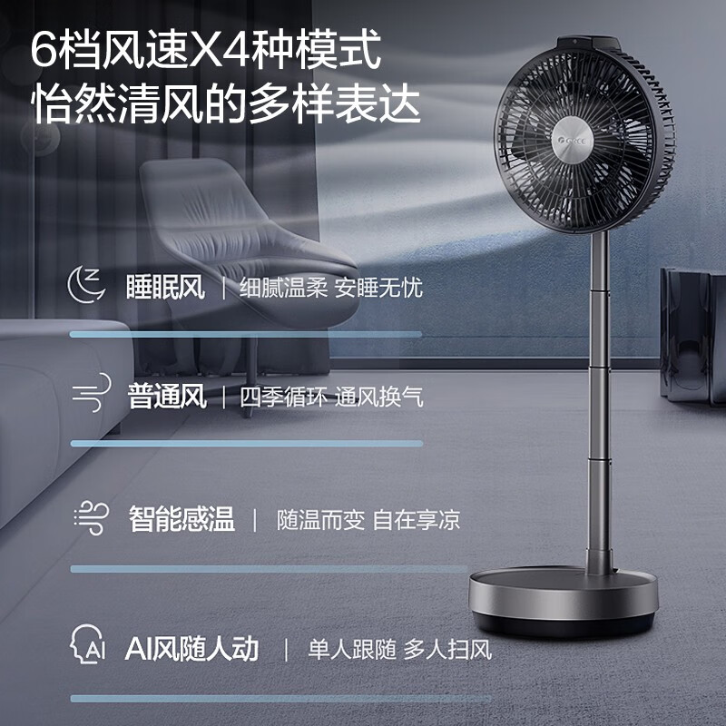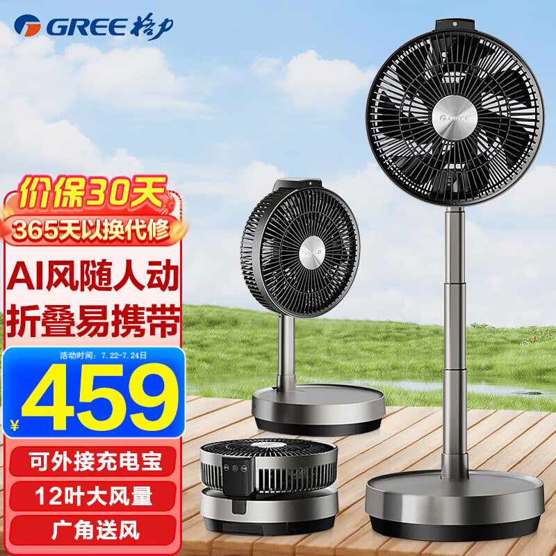 格力(GREE) 空气循环扇智能遥控户外便携电风扇可伸缩折叠落地扇直流变频风扇台式桌面两用换气扇 智能温感风扇FSZ-2303Bg7价格:489.00元!