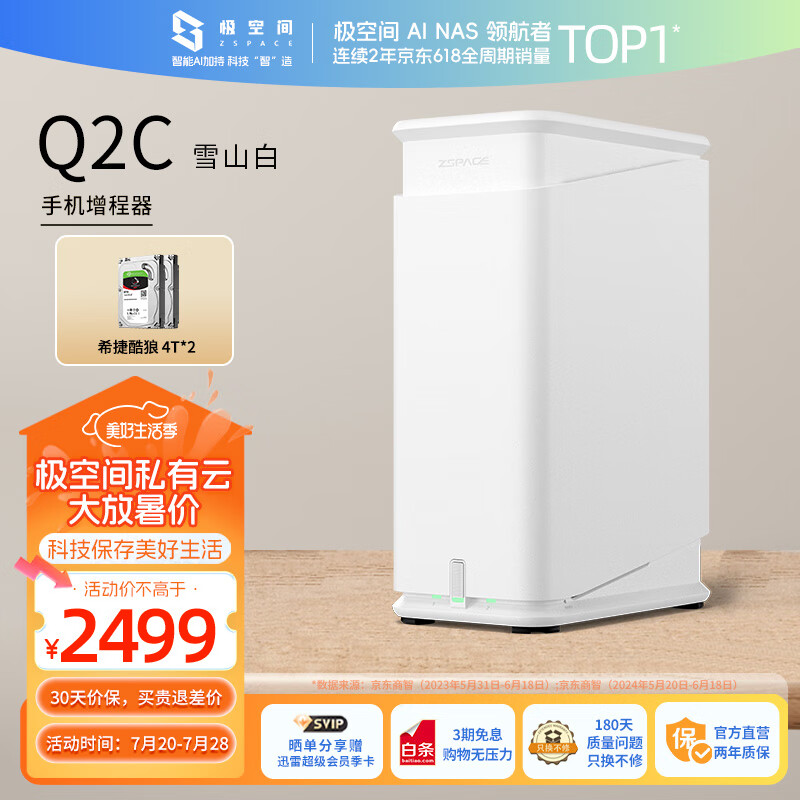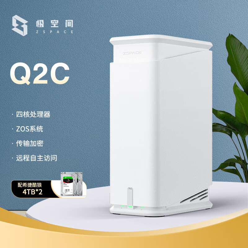 极空间私有云Q2C四核Nas网络存储服务器 家庭个人云网盘数据备份【双盘位 内置2块4T酷狼硬盘】雪山白价格:2699.00元!