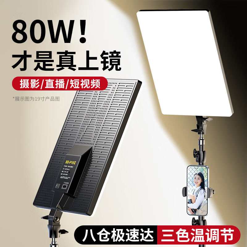 科润乐【80W高亮灯】直播补光灯平板摄影拍摄打光led拍照主播直播间专业美食灯光柔光美颜视频桌面影棚价格:148.00元!