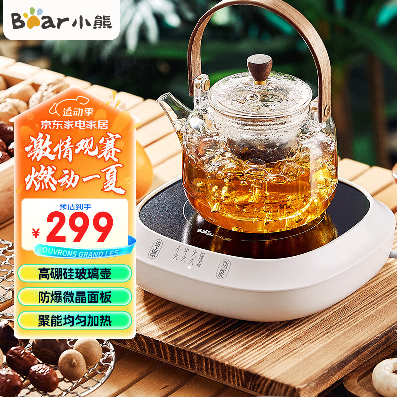 小熊(Bear)电陶炉 煮茶器煮茶炉煮茶壶 围炉煮茶黑茶花茶泡茶蒸茶一体不挑器具0.6L ZCQ-L05H5价格:299.00元!