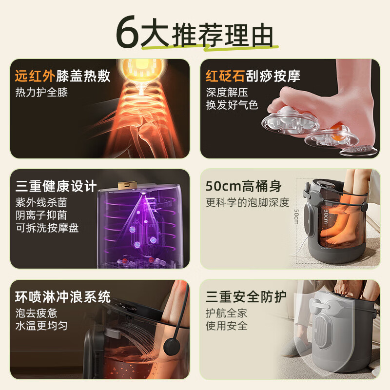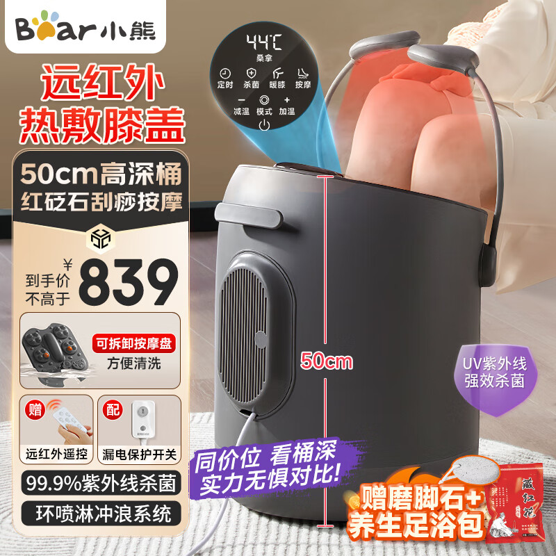 小熊(Bear)泡脚桶 全自动按摩恒温加热足浴盆 高深泡脚桶 智能杀菌泡脚盆过膝 爱膝桶 送长辈礼物 ZYP-E10J1价格:949.00元!