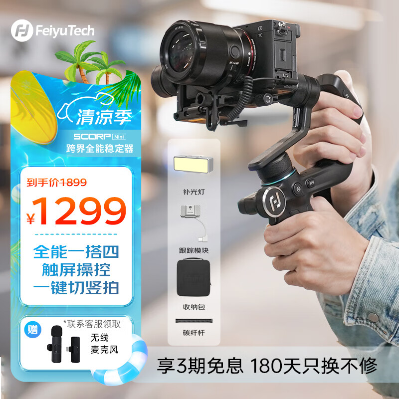 FeiyuTech飞宇蝎子Mini 手持云台 三轴防抖稳定器 标配+收纳包+补光灯+碳纤杆+跟踪模块价格:1299.00元!