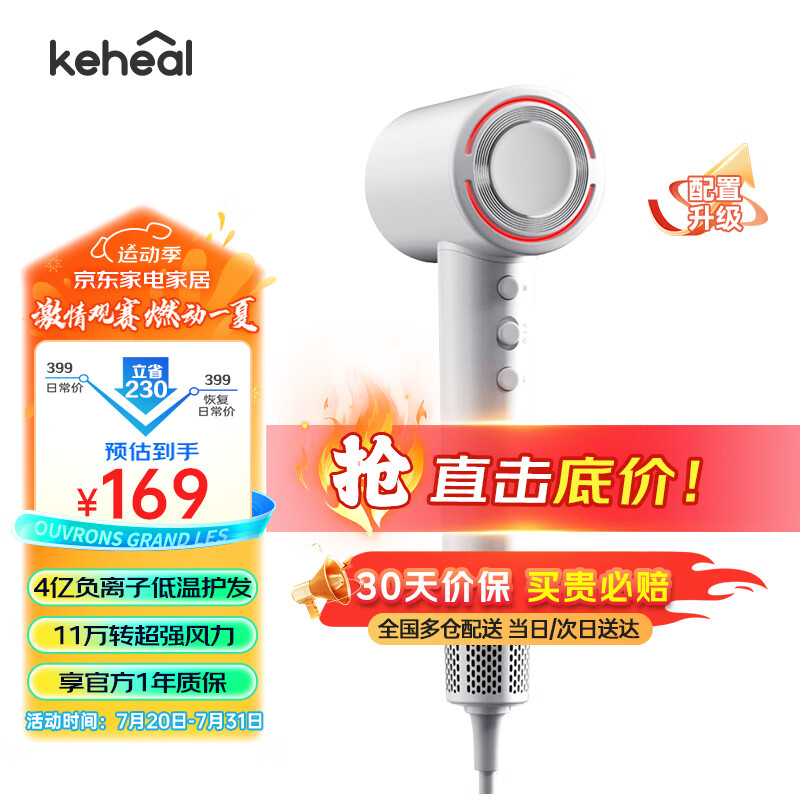 KEHEAL科西高速吹风机 家用大风力大功率速干负离子护发不伤发便携吹风筒七夕情人节礼物推荐 VE珍珠白价格:269.00元!