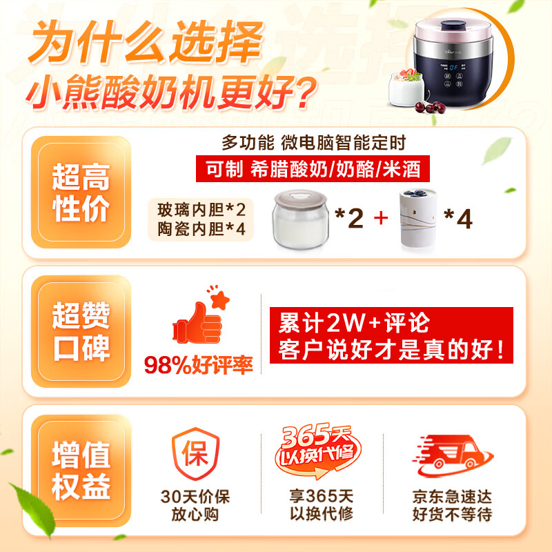 小熊(Bear)酸奶机 家用全自动希腊酸奶奶酪米酒机酸奶发酵菌玻璃内胆陶瓷分杯 SNJ-C10T1价格:299.00元!