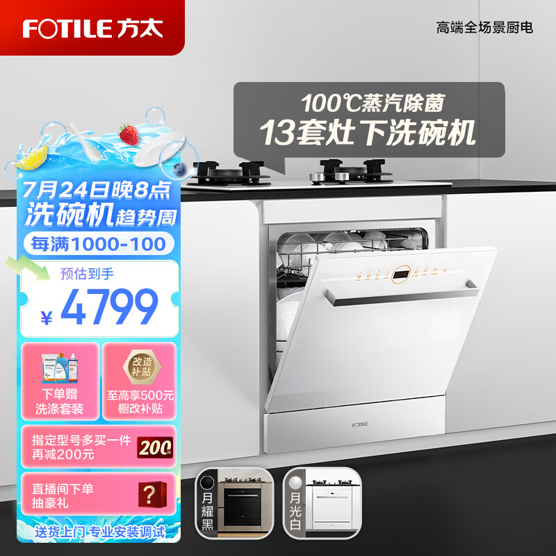 方太洗碗机N1S系列嵌入式 13套大容量 灶下洗碗机 100℃蒸汽除菌 一级水效 B-NF1白价格:5299.00元!