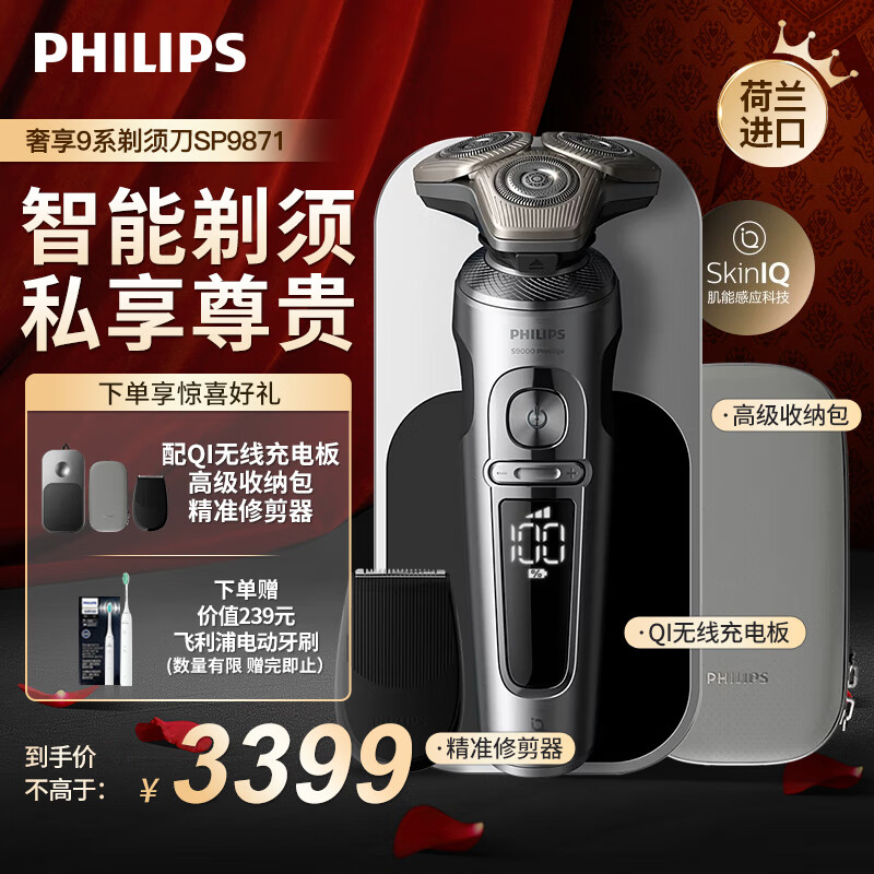 飞利浦(PHILIPS)电动剃须刀SkinIQ肌能感应刮胡刀奢享高端蜂巢9系整机荷兰进口 生日礼物送男友送老公 高端奢享9系|SP9871【敏感肌适用】价格:3999.00元!