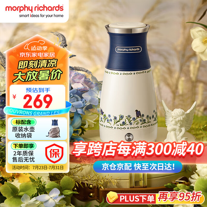 摩飞电器(Morphyrichards)电水壶小型便携式烧水壶旅行电热水壶不锈钢双层防烫 MR6090 大英联名款 蓝色价格:269.00元!