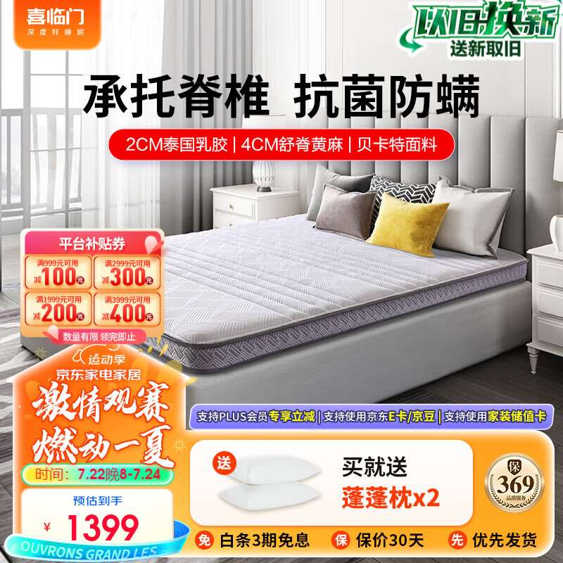 喜临门2cm进口乳胶薄垫子 黄麻硬垫 青少年/老人床垫air艾尔1.35x1.9米价格:1999.00元!