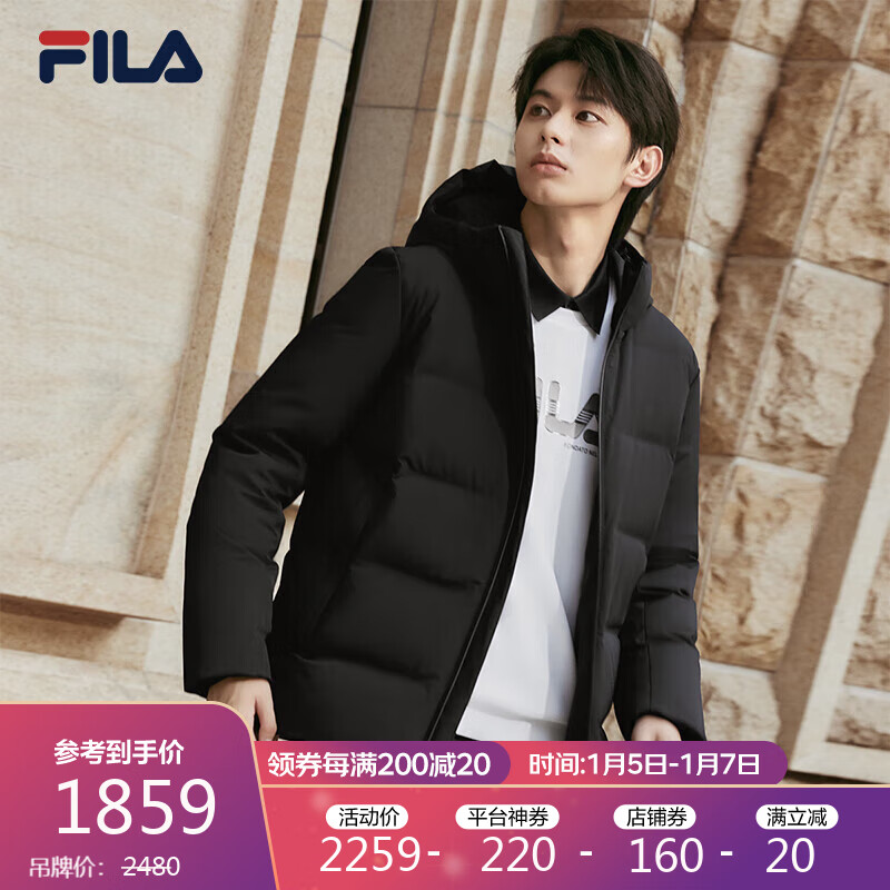 FILA斐乐官方男士羽绒服鸭绒2023冬季基础休闲舒适保暖连帽上衣价格:2259.00元!
