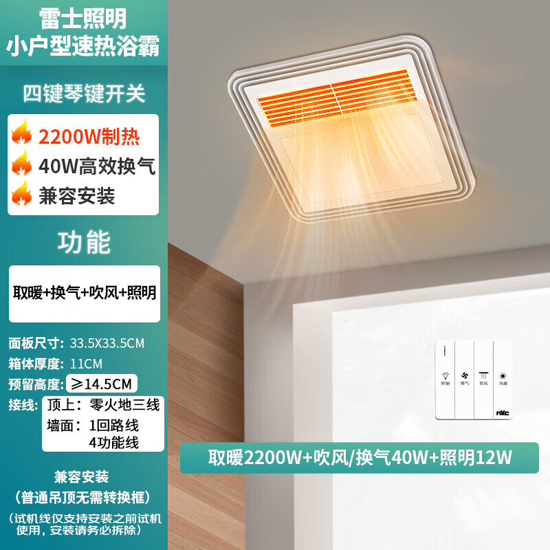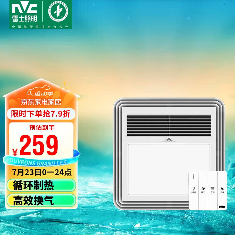雷士(NVC)风暖浴霸照明排气扇一体多功能卫生间浴室暖风机兼容安装Y328价格:345.00元!
