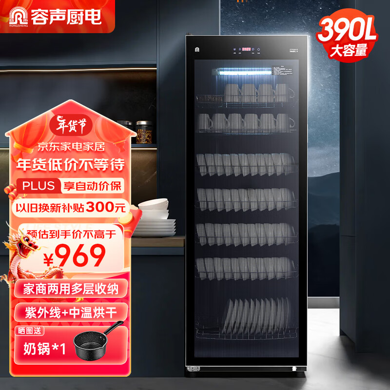 容声(RONGSHENG)消毒柜家用 立式消毒柜 消毒碗柜 双开门家商两用厨房商用大容量390L大容量390-RD305(S)价格:969.00元!