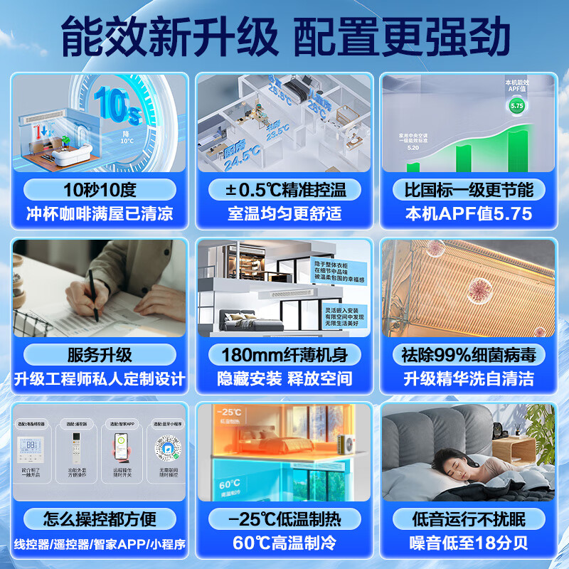 功能:智能调节,超薄内机,全直流变频