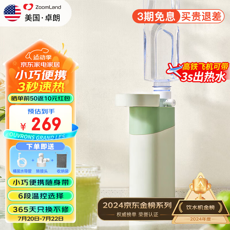 卓朗即热式饮水机便携式烧水壶 小型桌面迷你出差旅行便携饮水机家用小型桶装水抽水器 F-2019G价格:269.00元!