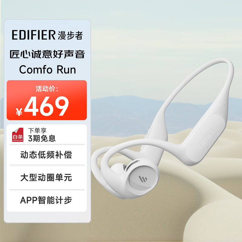 漫步者(EDIFIER)Comfo Run开放式蓝牙耳机 骨传导升级空气传导 运动耳机 无线耳机 跑步骑行不入耳佩戴 沙滩白价格:469.00元!