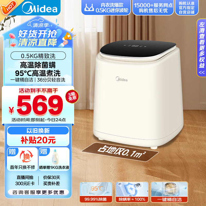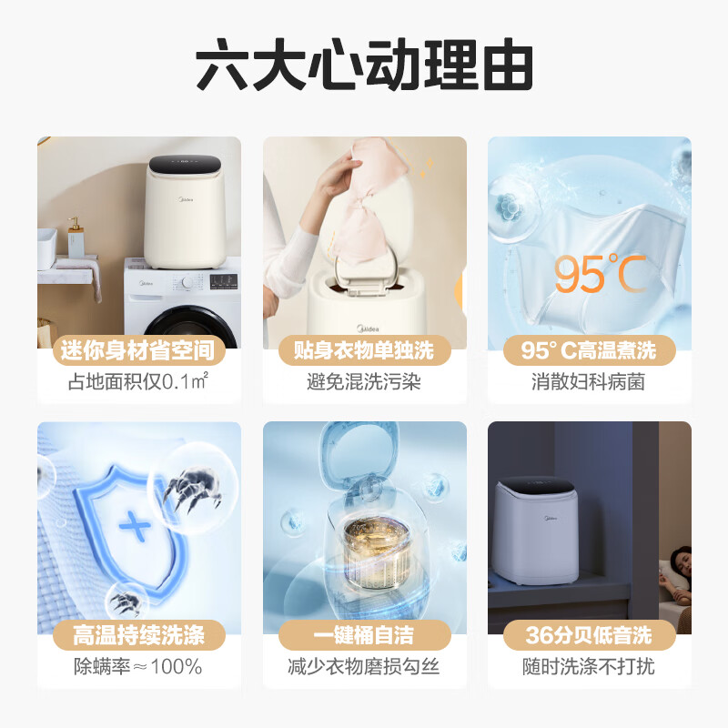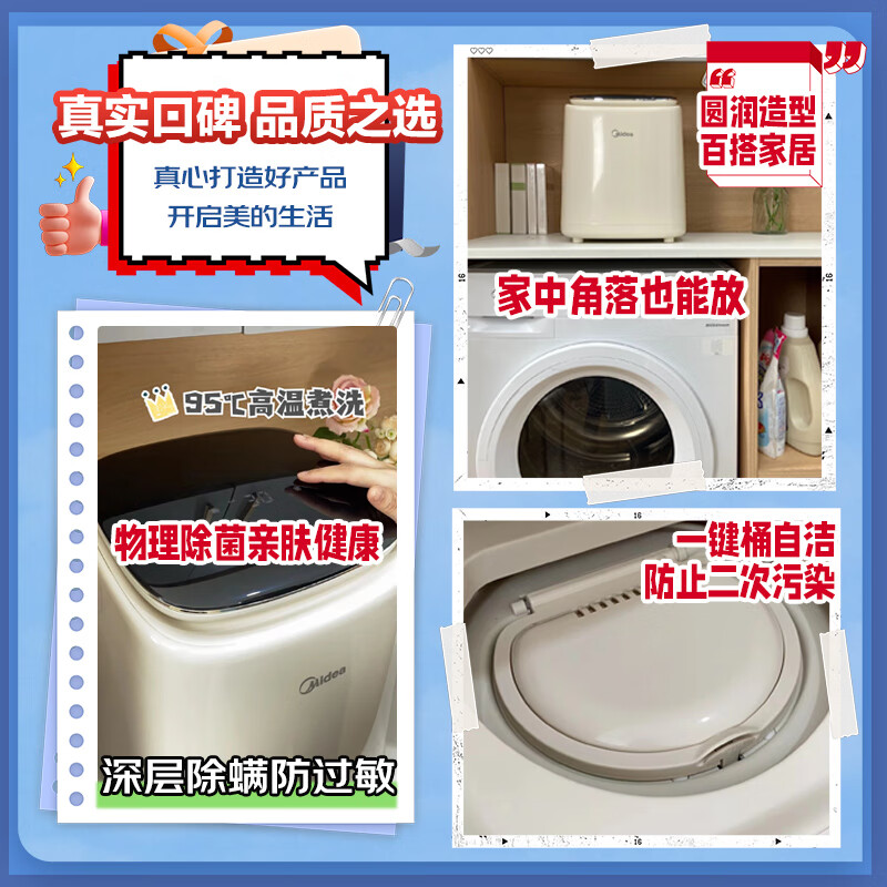美的(Midea)0.5kg迷你洗衣机全自动家用 MNB5VCAW0E 内衣洗衣机小型 婴儿洗衣机 高温除菌螨 轻音洗价格:569.00元!