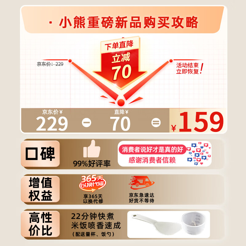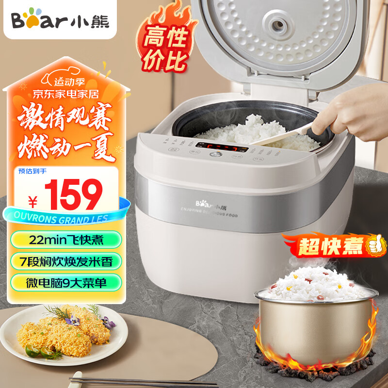 小熊(Bear)电饭煲 电饭锅 家用3-4个人多功能3L智能防溢预约元釜柴火饭迷你米饭锅 摩卡灰DFB-B30Z2价格:159.00元!