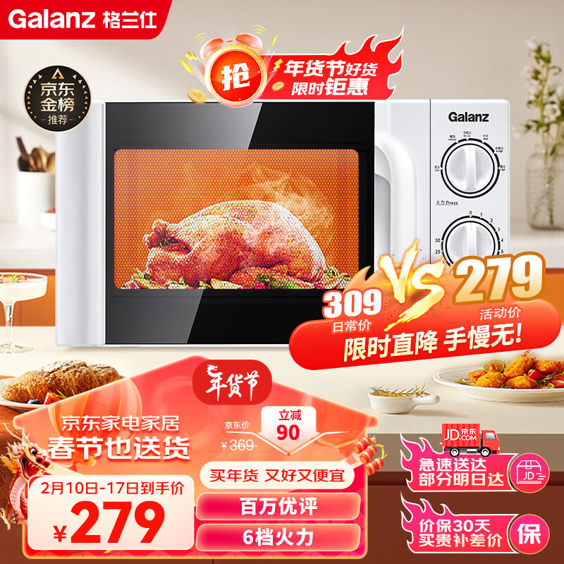 格兰仕微波炉20升 快捷家用 六档火力旋钮 易清洁 小型迷你微波炉P70D20TL-D4 1-2人适用价格:279.00元!