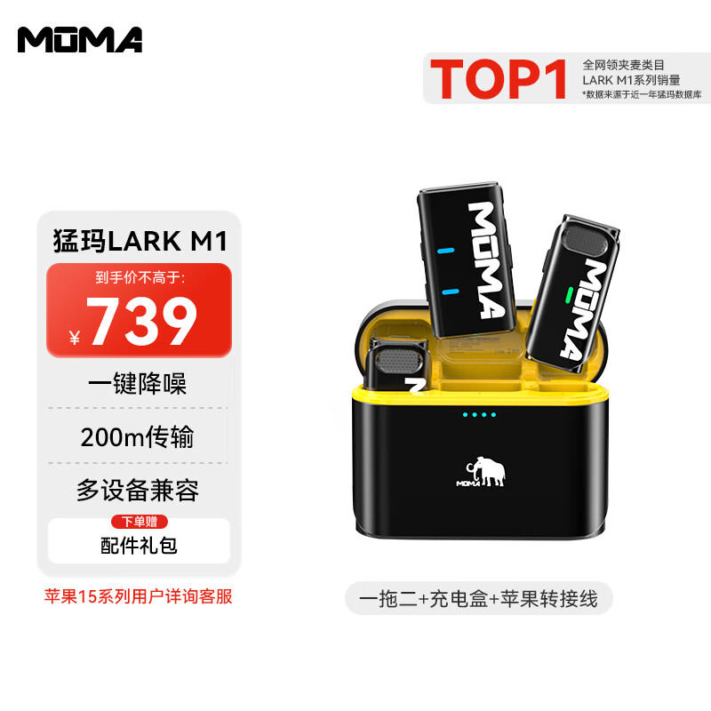 猛玛(MOMA)无线麦克风领夹麦克风猛犸larkm1一拖二小蜜蜂vlog采访户外直播手机收音麦 LARK M1价格:739.00元!