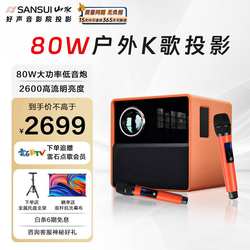山水 X77户外音乐K歌投影仪家用 家庭KTV投影机 听歌+k歌+看电影露营(1080p高清 雷石点歌 百万曲库)价格:2999.00元!