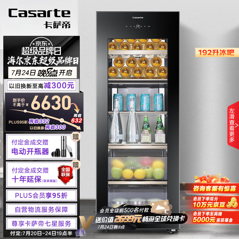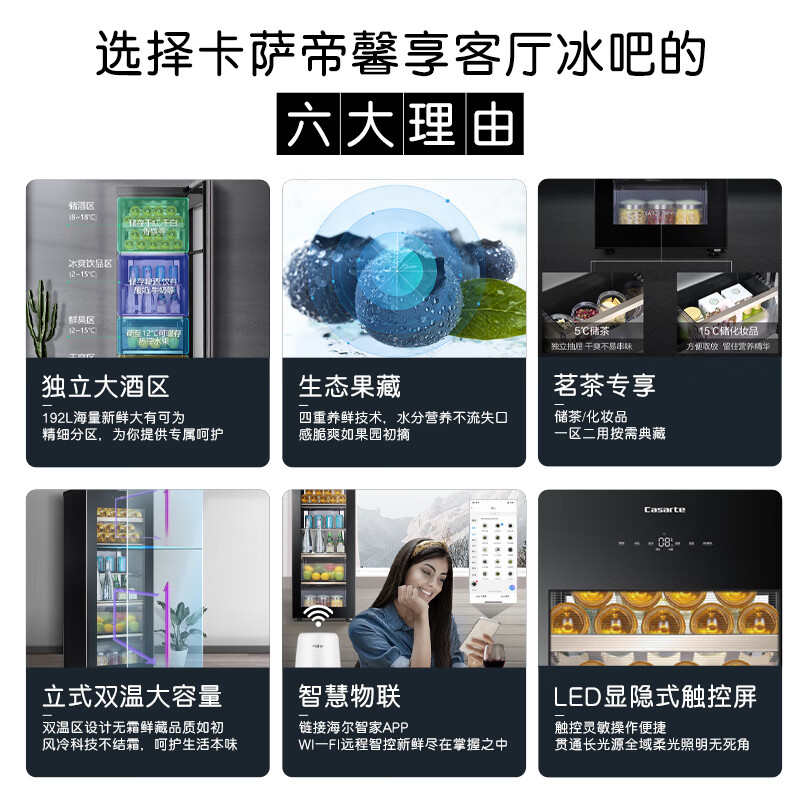 卡萨帝(Casarte)银河系列192升双温家用办公室冷藏柜暖藏冰吧 茶饮水果保鲜柜酒柜冰箱LC-192WU1 以旧换新价格:6630.00元!