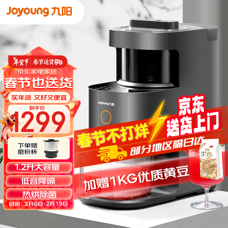 九阳(Joyoung)免手洗破壁机 破壁机家用 低噪音高端多功能热烘除菌榨汁机豆浆机Y3【天空系列】价格:1299.00元!