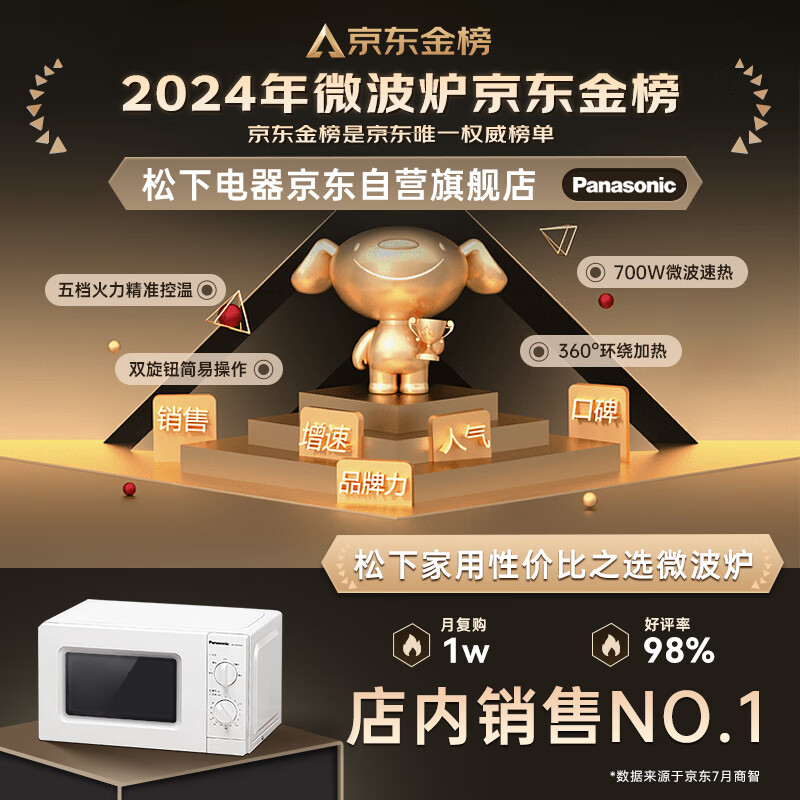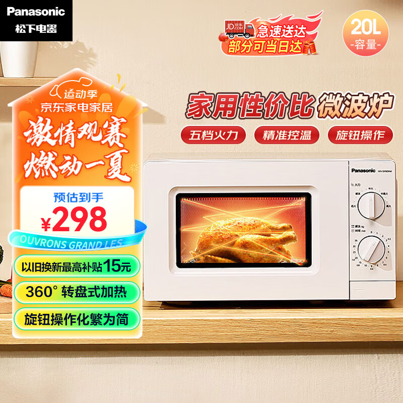 松下(Panasonic)NN-SM30NW 20升家用微波炉 360°转盘式加热 五档火力精准控温 旋钮操作化繁为简价格:298.00元!