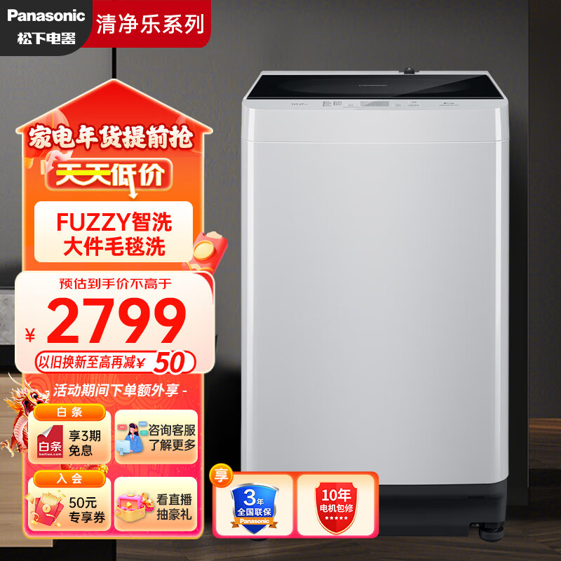 松下(Panasonic)波轮洗衣机全自动清净乐号 桶自洁免清洗 线纸屑 除螨洗超快洗 10公斤XQB100-QYACN价格:3099.00元!