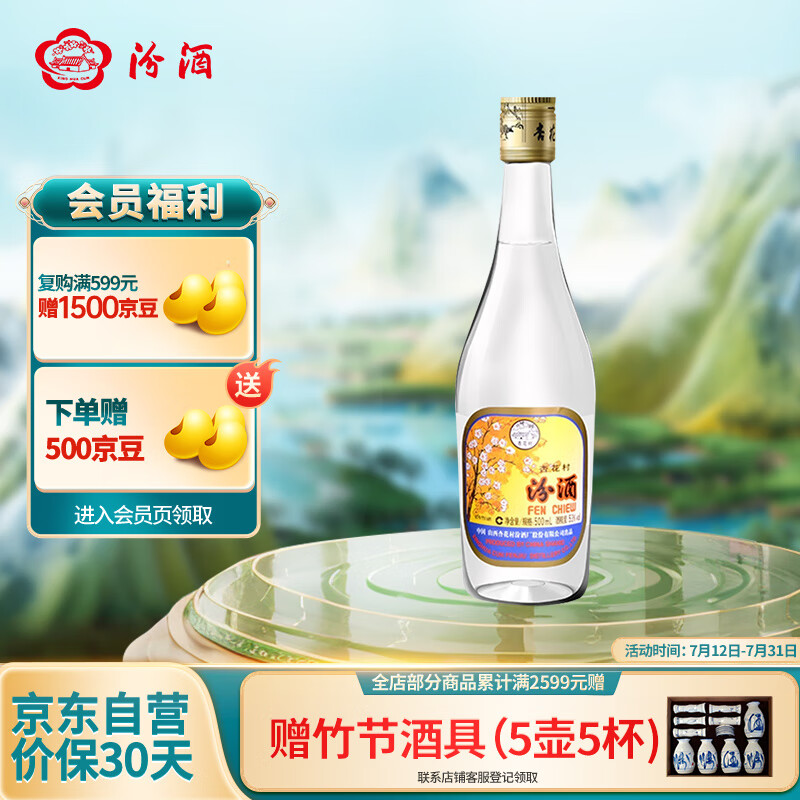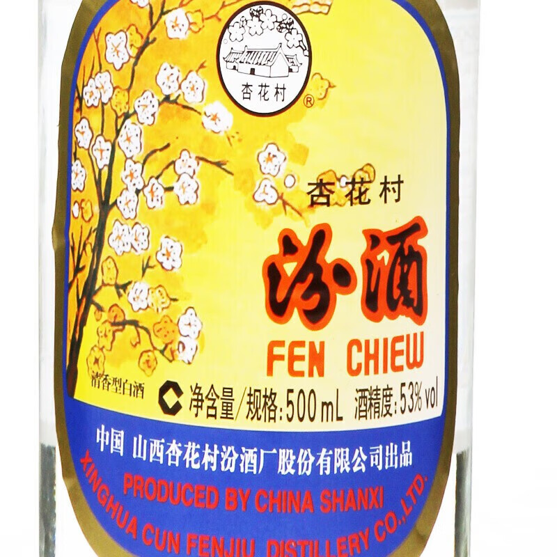 汾酒 出口玻汾 清香型白酒 53度 500ml*1瓶价格:63.00元!