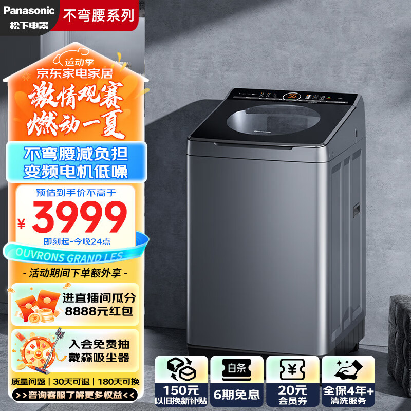 松下(Panasonic)波轮洗衣机全自动 节能变频直驱 离心洗护衣 户外服洗 10公斤大容量 不弯腰XQB100-UAJUD【大U】价格:3999.00元!