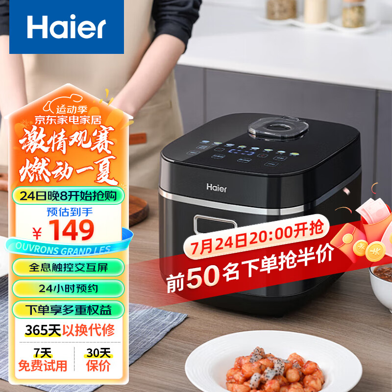 海尔(Haier)电饭煲电饭锅4L晶钻厚釜内胆全息触控屏3-8人七段加热多功能家用智能电饭煲焖香阀防溢锅JC2S4020价格:239.00元!