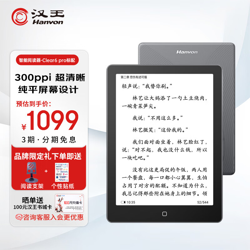 汉王(Hanvon)Clear6Pro电子书阅读器 6英寸墨水屏电纸书平板 智能阅读本 学习笔记本 看书学习电子纸 轻量便携价格:1099.00元!