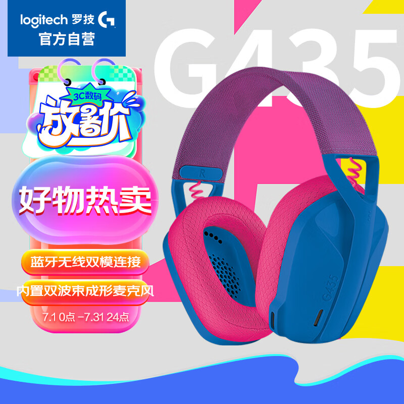 罗技(G)G435 无线头戴式游戏耳机 蓝牙耳机 虚拟环绕声 LOL吃鸡FPS听声辩位 送男友女友 蓝色 A00150价格:399.00元!
