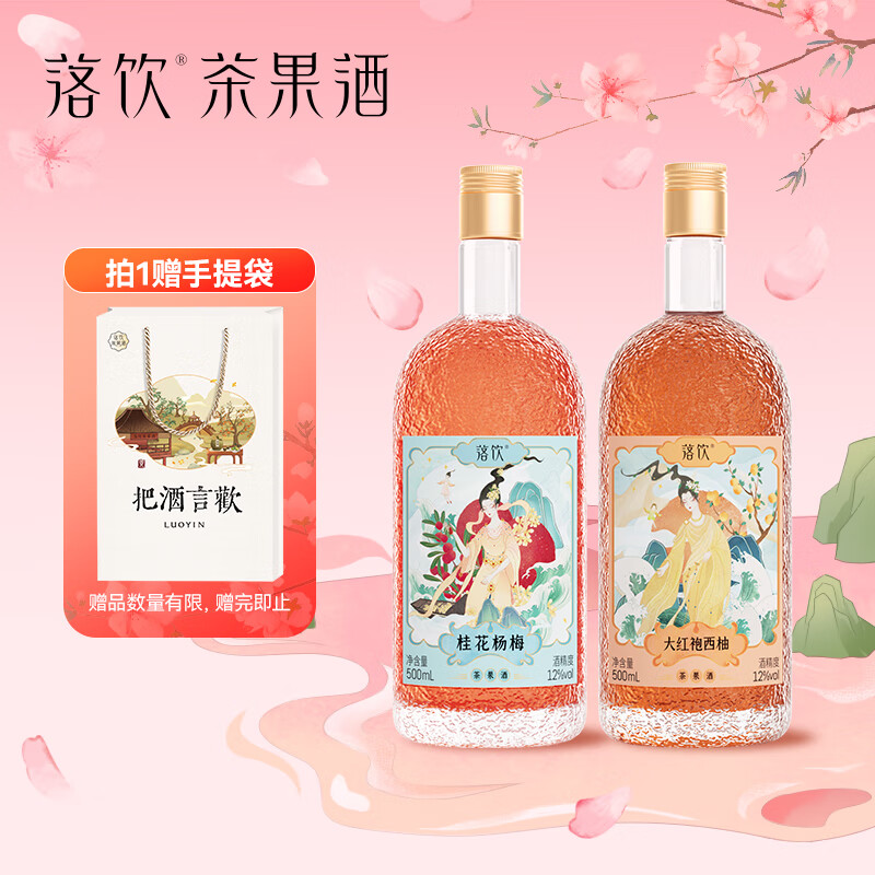 落饮茶果酒 女士低度微醺酒杨梅酒桂花酒柚子酒 12度 500ml*2瓶价格:98.00元!