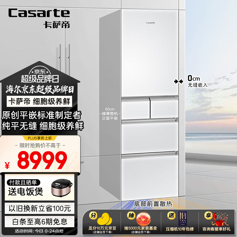 卡萨帝(Casarte)386升原创平嵌法式多门家用超薄嵌入式电冰箱一级能效小型3-4人白色无霜BCD-386WLCMDM4W1U1价格:8999.00元!