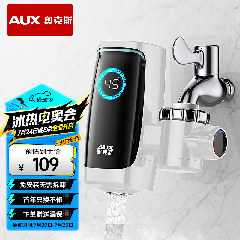 奥克斯(AUX)电热水龙头免安装快速加热厨房冷热厨房宝即热式电热水器SJX3接驳式加漏保价格:109.00元!