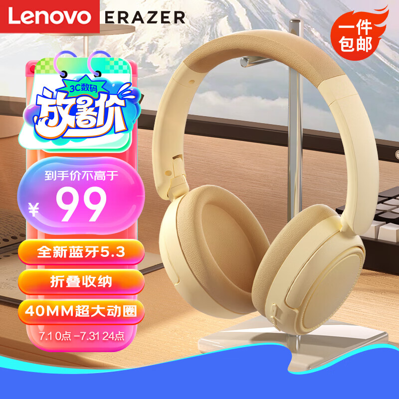 联想(Lenovo)异能者L6头戴式无线蓝牙耳机 蓝牙5.3电竞游戏运动立体声音乐耳麦 适用华为小米手机 米白色价格:99.00元!