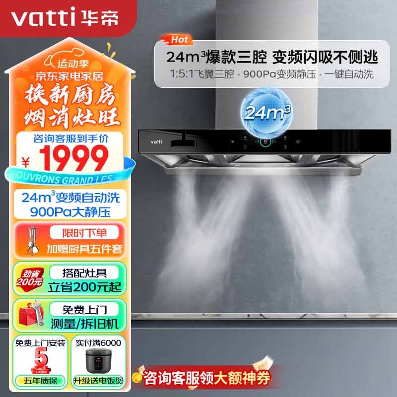 华帝(VATTI)抽油烟机顶吸 官方三腔变频创世S6欧式家用脱排吸油烟机 24风量大吸力挥手智控自动清洗 i11206价格:1999.00元!