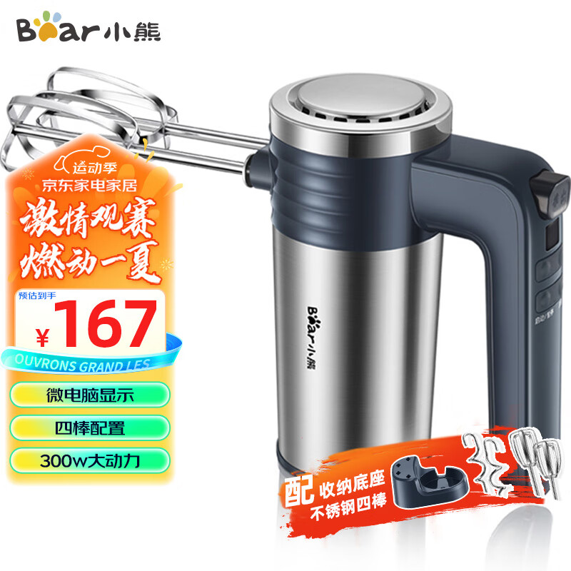 小熊(Bear)打蛋器 家用电动打蛋器 奶油奶盖打发器迷你 烘焙手持搅拌器和面糊 四棒十档DDQ-B03R1价格:167.00元!