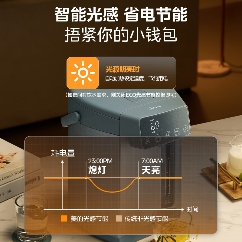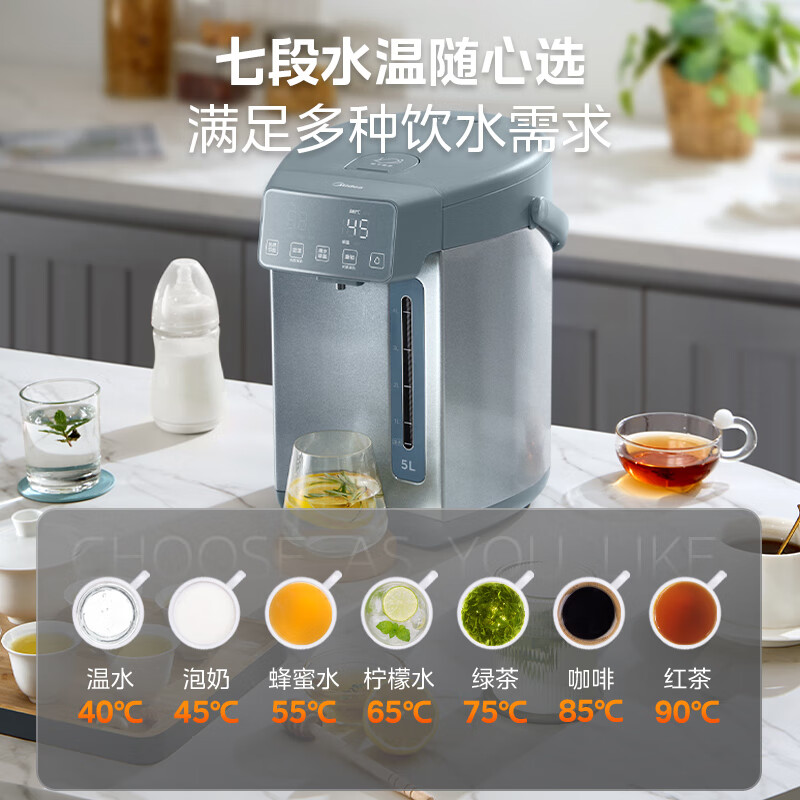美的(Midea)电热水瓶烧水壶电热水壶恒温水壶5L大容量烧水一体机母婴级不锈钢内胆多段保温非即热式饮水机 304不锈钢光感节能电水瓶 5L价格:499.00元!