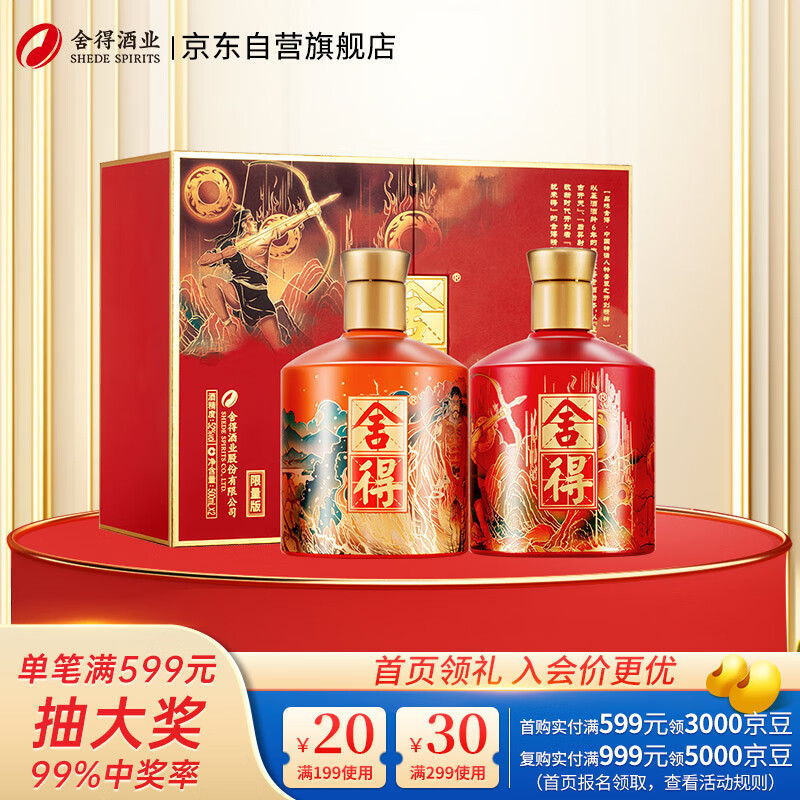 舍得 神话人物套装之开创者(盘古+后羿) 浓香型 52度 500ml*2 礼盒装价格:1098.00元!