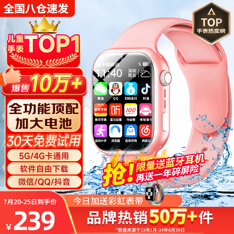 爱百分【无游戏长待机】儿童智能电话手表插卡5G4G卡通用wifi下载学生多功能精准定位青少年手表礼物 顶配粉【电池加大+全功能可下载+微信抖音+GPS】 1.81大屏无游戏无广告价格:269.00元!