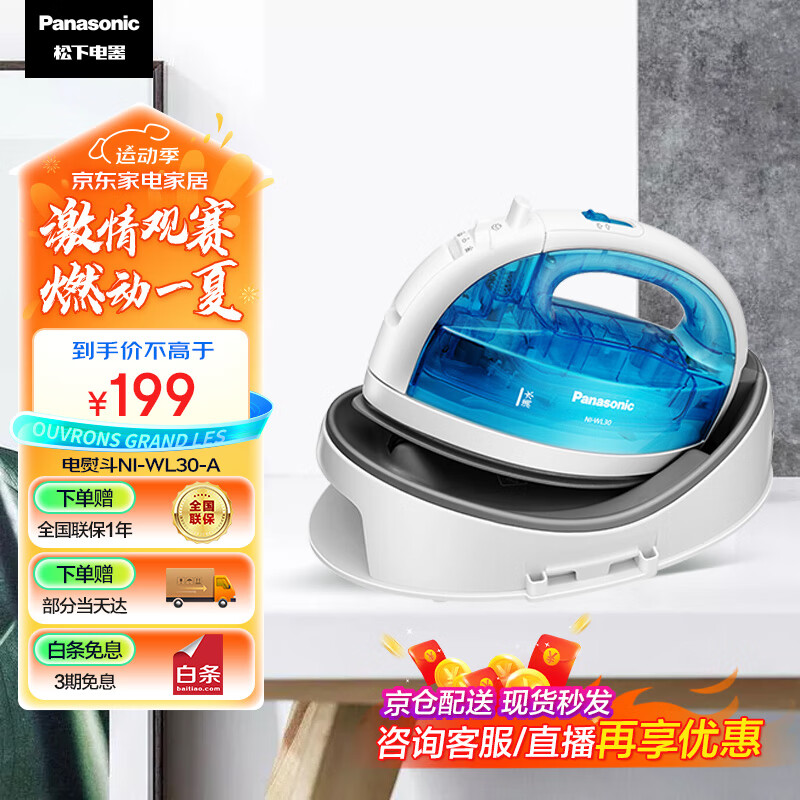 松下电熨斗家用便携 手持蒸汽挂烫机无线蒸汽熨烫 除螨除菌除皱不伤衣NI-WL30价格:199.00元!