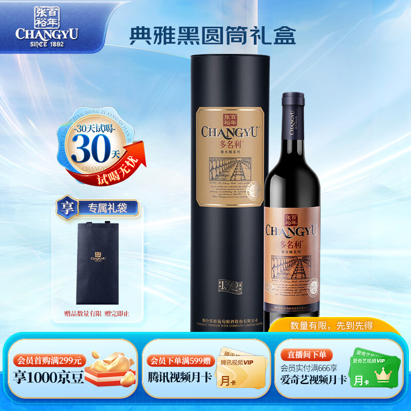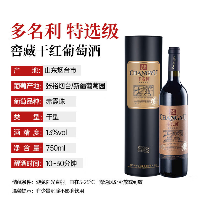 张裕 特选级赤霞珠干红葡萄酒750ml圆筒装国产红酒(新老包装)送礼价格:61.00元!