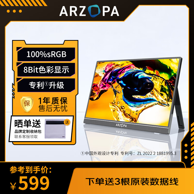 ARZOPA 阿卓帕16.1英寸100%sRGB 便携式显示器 电脑手机笔记本直连扩展屏 PS4/5 SWITCH显示副屏 A1C价格:709.00元!