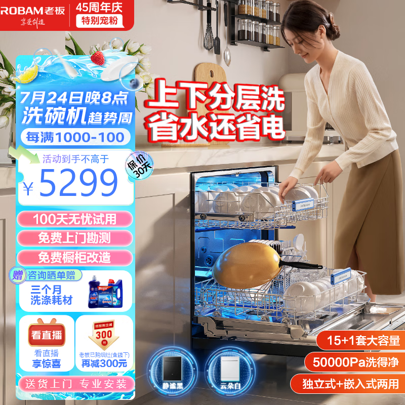 老板(Robam)F80D黑洗碗机15+1套去重油污嵌入式热风烘干消杀168h长效存储一体机家用独立式分层洗价格:5799.00元!