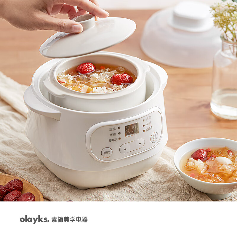 欧莱克(olayks)出口原款 电炖锅电炖盅隔水炖家用燕窝煮粥神器小型炖汤煲汤锅婴儿辅食陶瓷汤盅 按键款-5大菜单价格:79.00元!