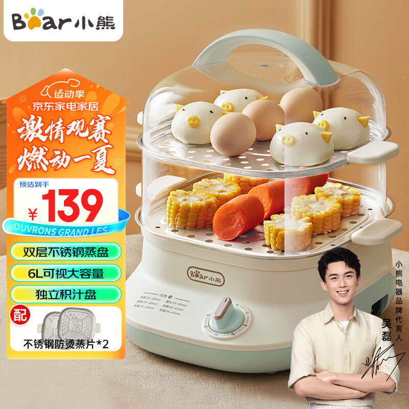 小熊(Bear)电蒸锅 煮蛋器 不锈钢 家用蒸馒头包子早餐可定时 蒸煮一体自动断电小型多功能锅DZG-C60W9价格:139.00元!