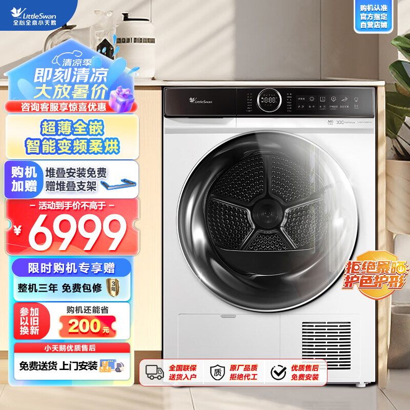 小天鹅(LittleSwan)10kg 热泵烘干机 干衣机家用 白色 超薄 除螨除菌除潮 多层线屑过滤 TH100VCH807W价格:6999.00元!