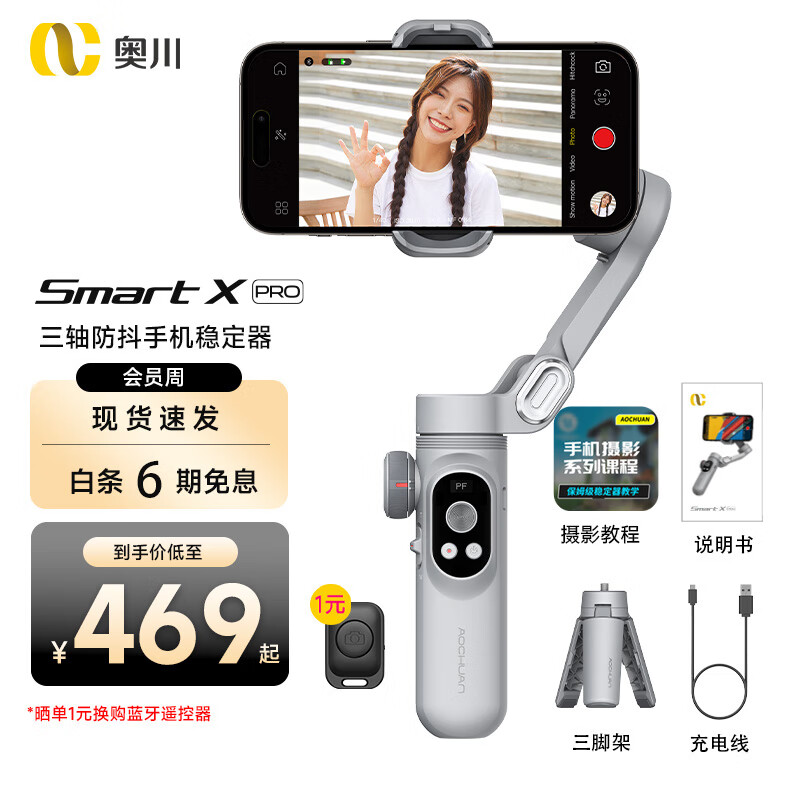奥川XPRO手机稳定器三轴手持云台防抖人脸跟踪直播拍摄舞蹈旅游vlog平衡支架自拍杆多功能拍视频补光价格:469.00元!