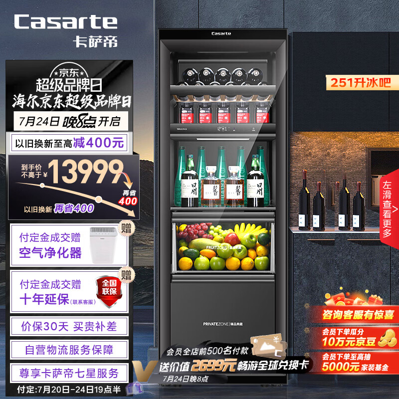 卡萨帝(Casarte)251升三温区原创平嵌零距离嵌入暖藏冰吧 茶叶饮料水果冷藏柜保鲜柜小型冰箱LC-251WLCDFM1U1价格:13999.00元!